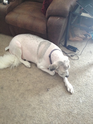 Chewy was…less than thrilled. Great Pyrenees require daily grooming, and with the accident and everything else last fall going on I’ll admit I’d gotten lax. He had some mats, and I opted to let the groomer just shave him instead of tormenting the poor dude with hours upon hours of de-knot-brushing.