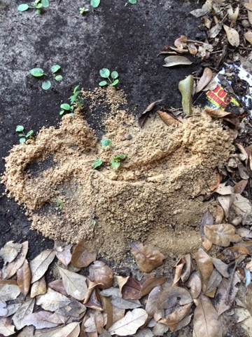 | I assure you, there’s a hole there (rained last night). It’s the size of a doughnut hole…2″ across or so. |