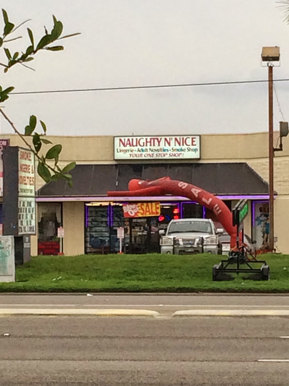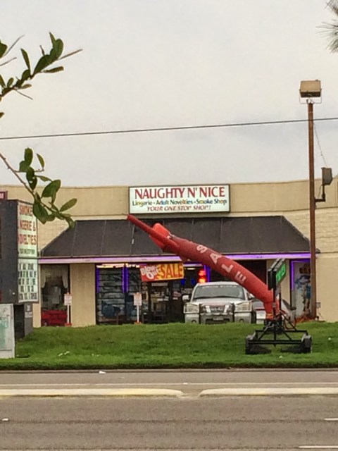 Across from one of our favorite neighborhood restaurants is one of the many lingerie/toy shops in the neighborhood. No, we don’t live in a red-light district: Houston firmly supports the idea of families…which seems to include the making of said families.