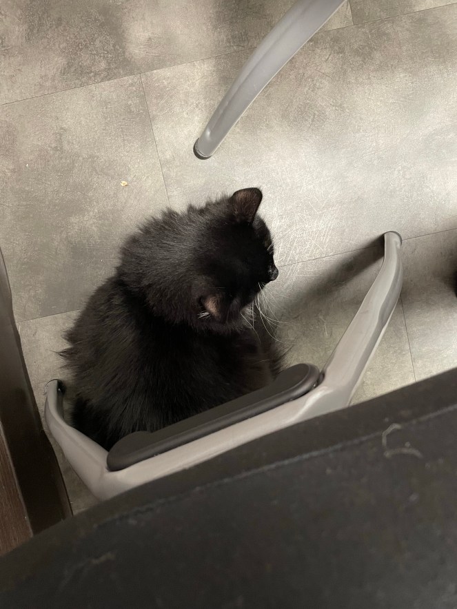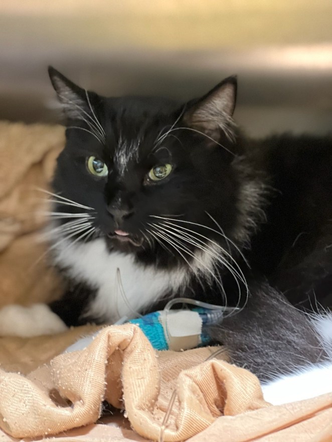 Last Thursday in the middle of an extremely busy work day (including a go-live of a software product my team has been working on for a long time), I was interrupted by a cat who skittered across the kitchen floor at a dead run, yowling. It sounds funny, but fAngus only yowls when he’s in pain or sick, so I muted my call and found him lying on the steps. He was drooling, not moving, breathing harder than normal, and his eyes were extremely dark gold.