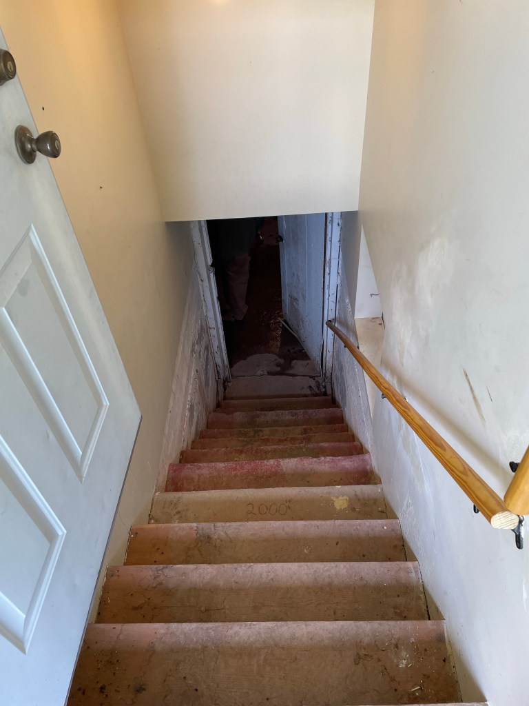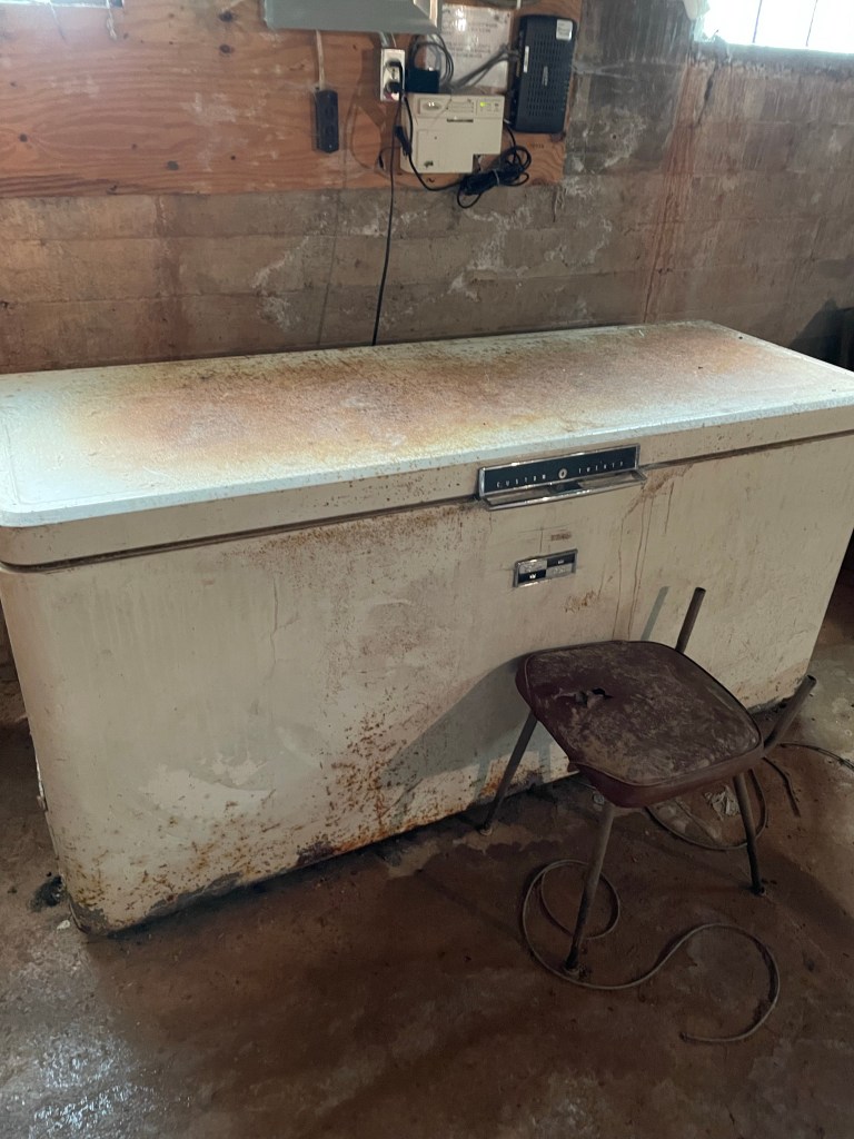 Anyway. The basement actually came along after the house. There’s a wonderful family story about Grandma Ida working in the kitchen while the uncles rolled the house on top of the newly dug basement. Therefore, the basement door is outside, next to the door into the house. And that, my friends, is where the horror show begins.