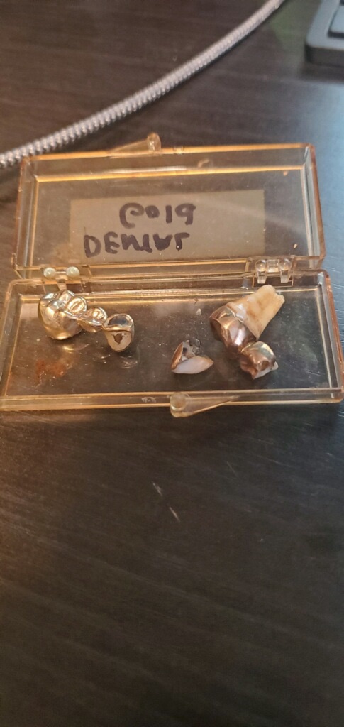 No, nobody knows whose teeth those are. No, nobody wanted them (I suggested, because I’m a terrible smartass, that each adult could have a tooth and they could be made into pendants, but that was appropriately vetoed by the siblings, likely with some new reservations about their new sister-in-law). Anyone who knew whose mouth(s) they came from is gone, so SK brought them to a local jeweler. I wonder how old they were, and how long they were in that cupboard. I’m sure there’s a story there eventually.